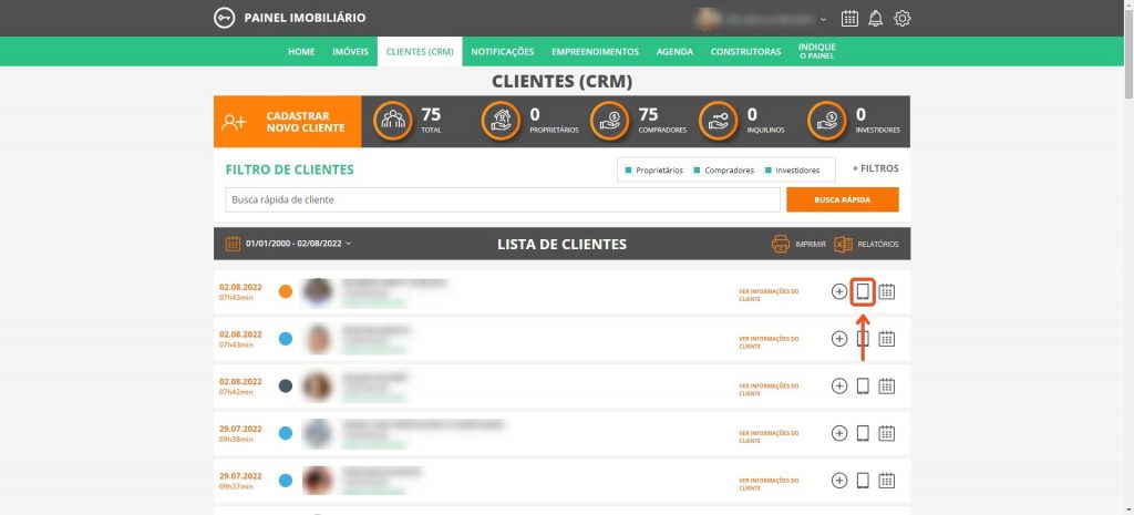 No seu Painel Imobiliário, clique em CLIENTES / CRM.