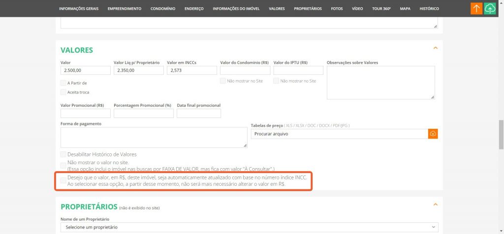 5. Salve seu imóvel e não precisa mais se preocupar em alterar o valor. O mesmo atualizará automaticamente.