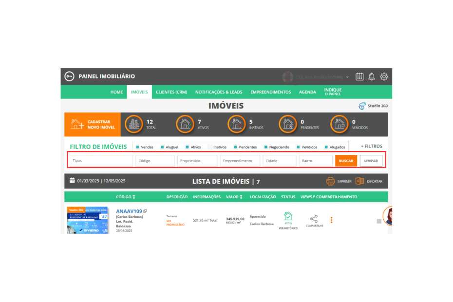 Veja o Vídeo Demonstrativo Busca na BARRA DE BUSCA, na listagem de IMÓVEIS ou CLIENTES Ao entrar no seu Painel Imobiliário, clique em IMÓVEIS. Na… Continue a ler »010 | Como realizar a busca na BARRA DE BUSCA do menu IMÓVEIS