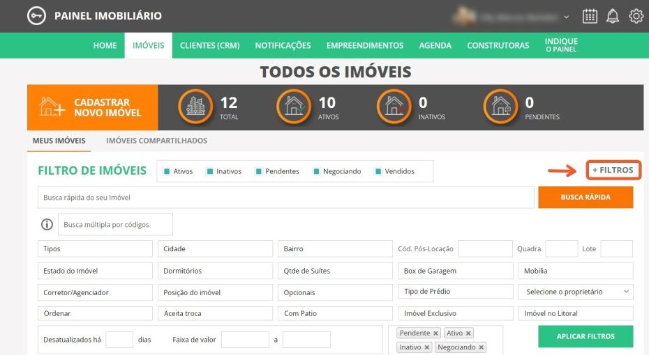 Veja o Vídeo Demonstrativo 1. Na Lista de IMÓVEIS, na parte direita superior da tela, você encontrará o botão | + FILTRO | 2. Esse… Continue a ler »009 | Busca LÓGICA de IMÓVEIS através do botão > + FILTRO